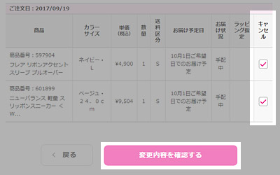 ただし、一部の商品は配送情報の変更ができない場合があります。